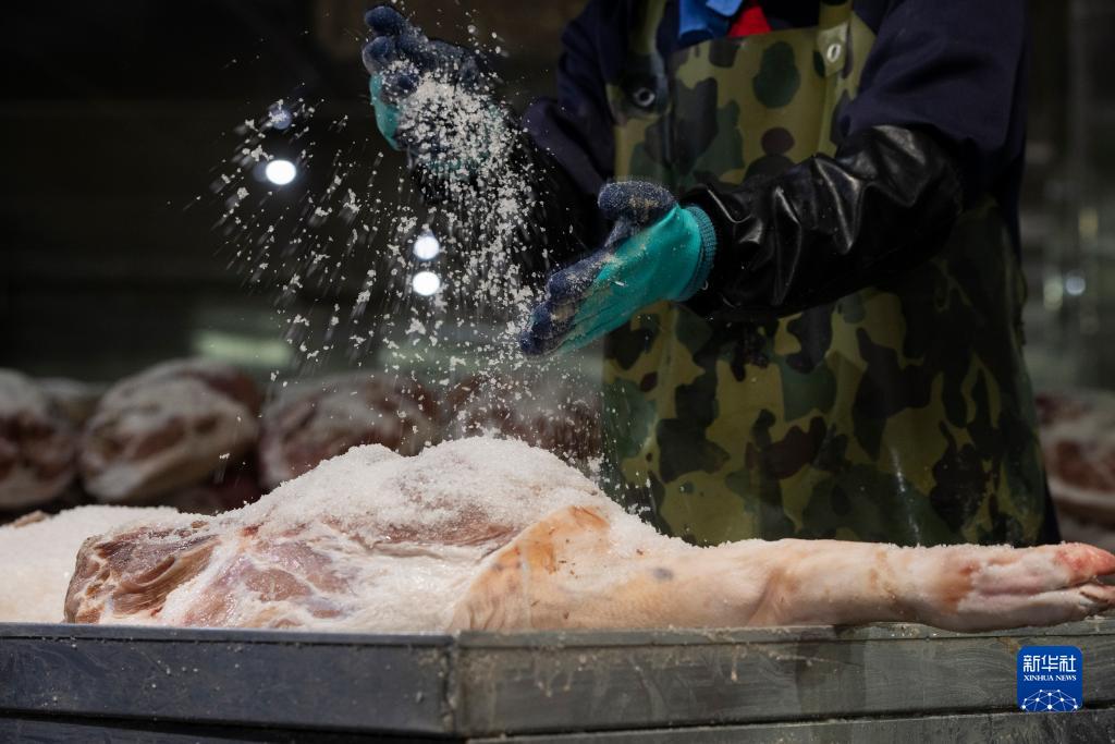 立冬將至,浙江省金華市的火腿生產企業進入腌制忙碌時期。