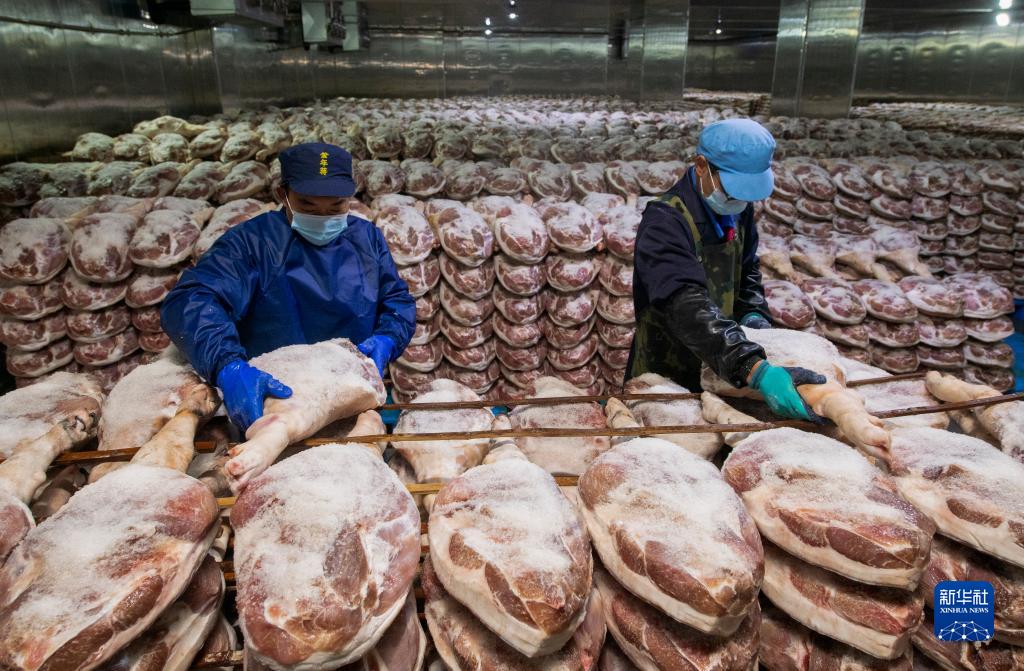 立冬將至,浙江省金華市的火腿生產企業進入腌制忙碌時期。