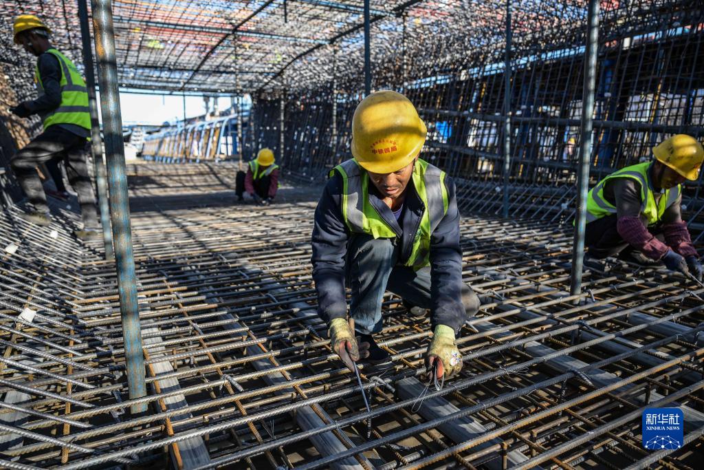 11月6日,中鐵四局施工人員在合新鐵路安徽段眾興制梁場箱梁預制現場施工。