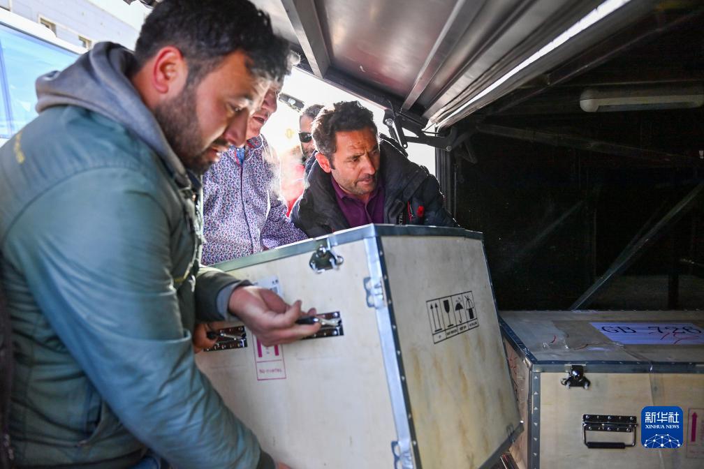 在新疆紅其拉甫口岸,出境旅客將行李搬上國際道路旅客班車(11月6日攝)。