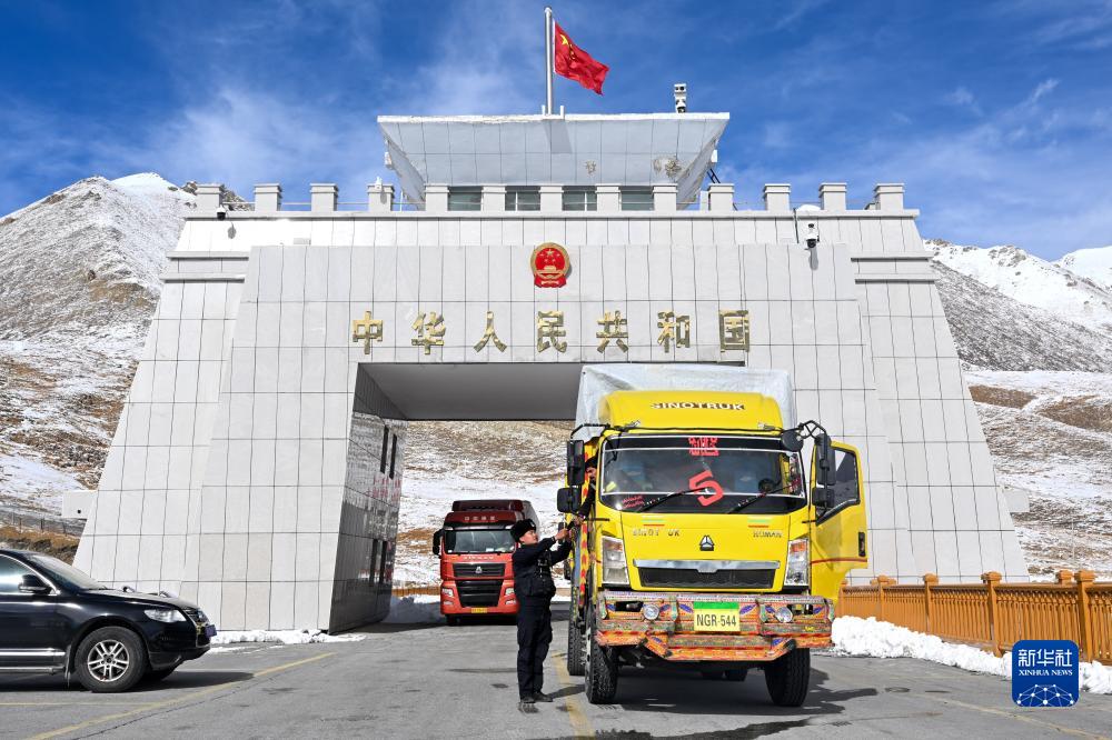 新疆出入境邊防檢查總站紅其拉甫邊檢站民警在國門對入境車輛進行查驗 (11月6日攝)。