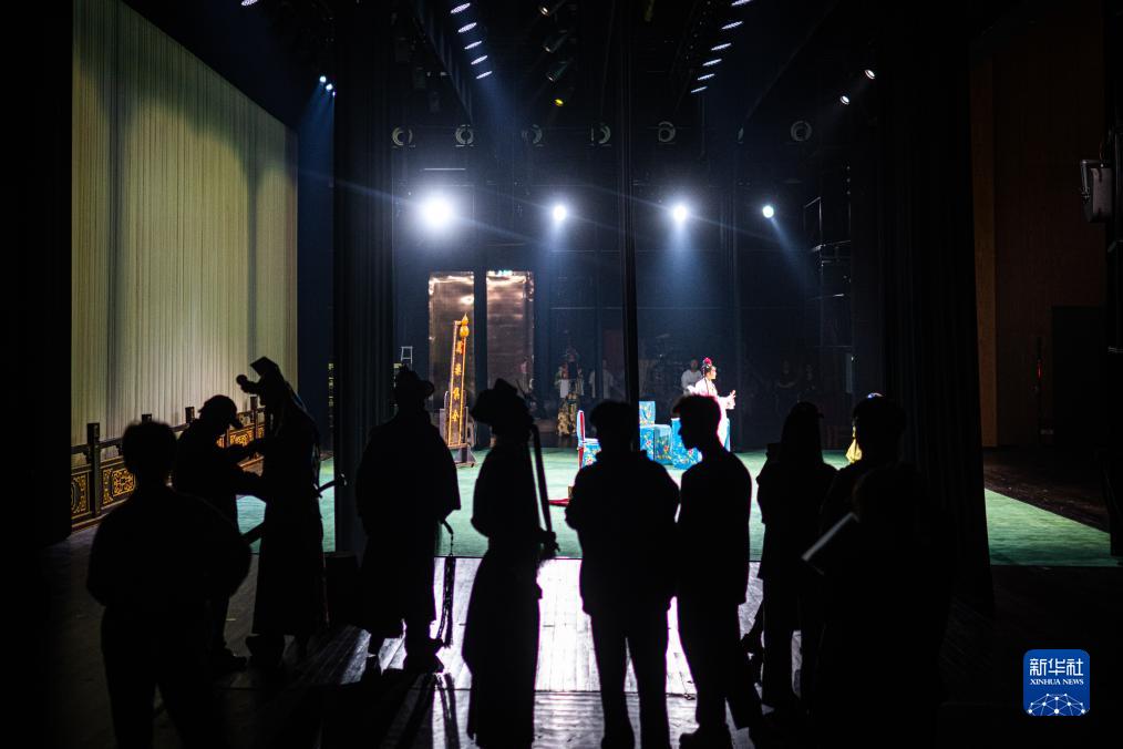 10月28日,楚劇演員在場邊等待出演《秦瓊表功》。