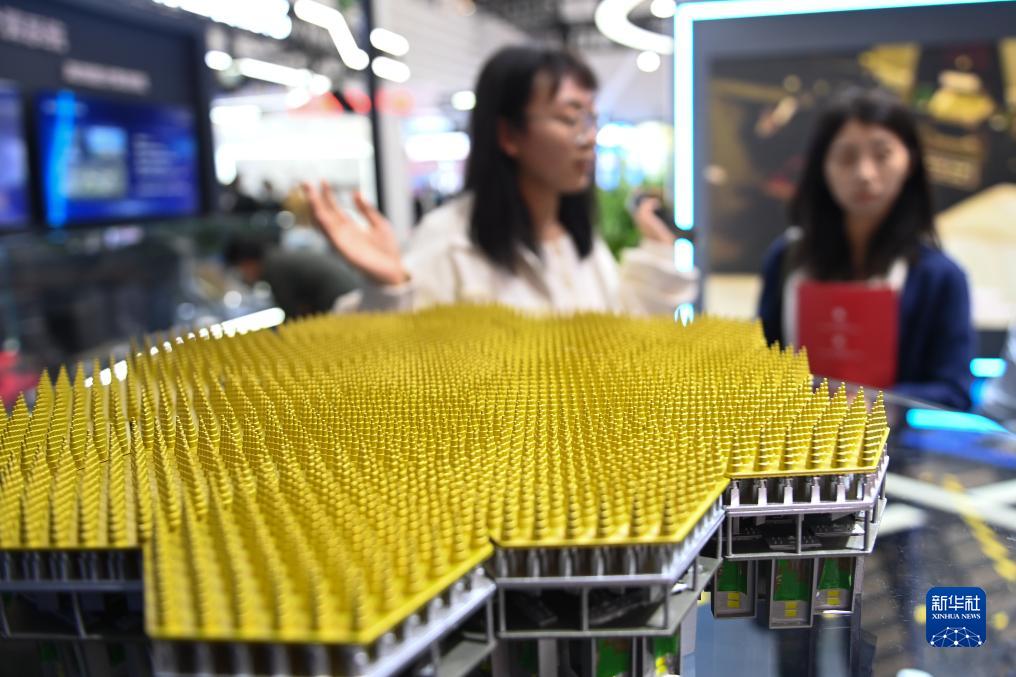 11月7日,觀眾在之江實驗室展臺了解射頻相場望遠鏡核心單元。