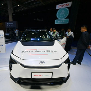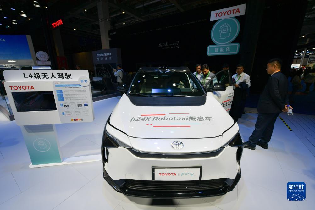 11月6日在第六屆進博會汽車展區豐田展臺拍攝的純電自動駕駛出租車概念車。