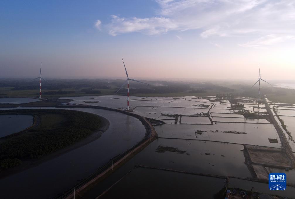 這是10月30日拍攝的孟加拉國科克斯巴扎爾風電項目現場(無人機照片)。