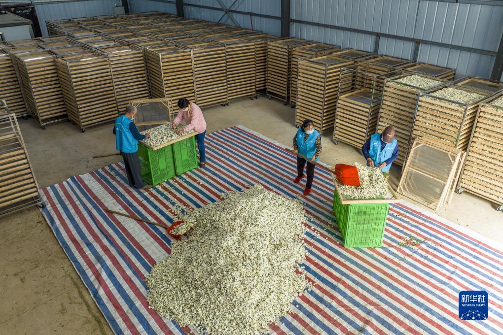 近日,安徽省蕪湖市繁昌區峨山鎮東島村貢菊種植基地的菊花進入收獲期,當地村民搶抓晴好天氣采摘、加工。近年來,東島村大力發展菊花產業,采取“合作社+種植大戶+農戶”共同經營的模式,通過土地流轉、用工、分紅等方式幫助當地群眾增收。
