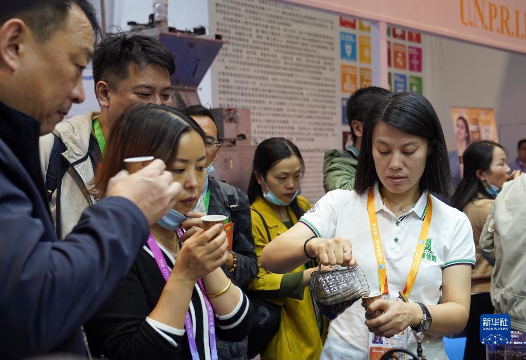 11月7日,在第六屆進博會食品及農產品展區,展商請觀眾品嘗來自印尼的咖啡。
