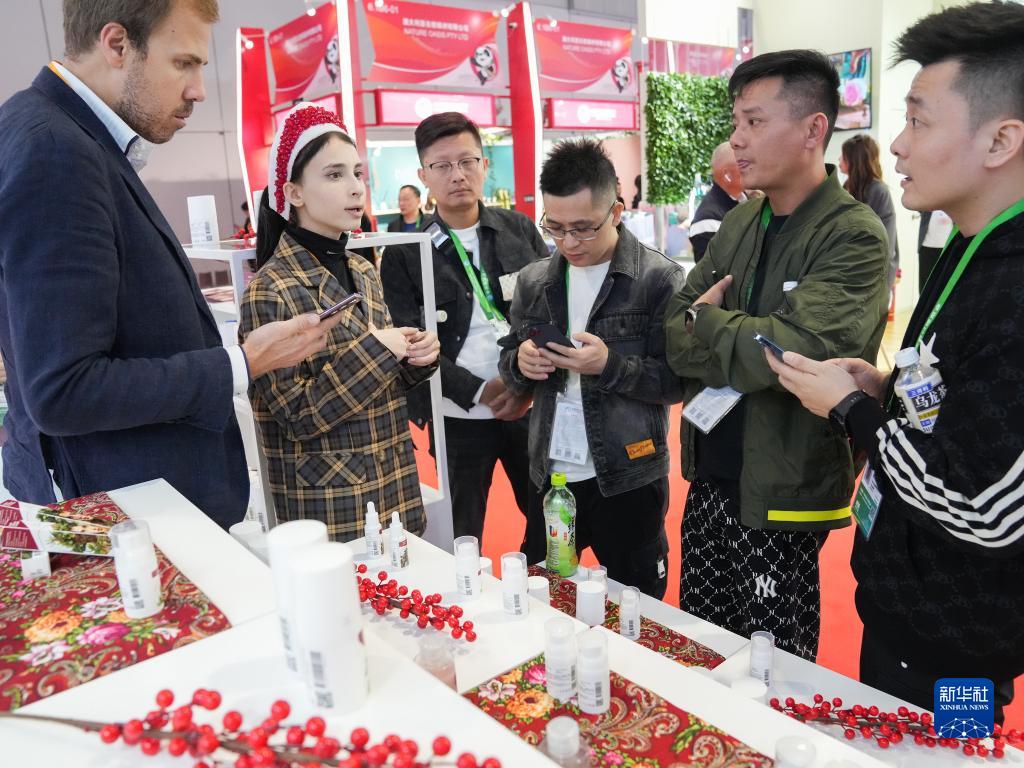 11月7日,在第六屆進博會消費品展區,參觀者在咨詢來自俄羅斯的產品信息。