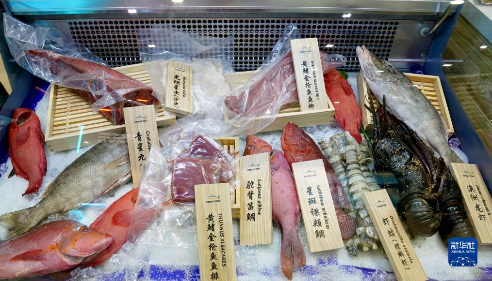 11月7日,在第六屆進博會食品及農產品展區拍攝的來自太平洋中部島國基里巴斯的八種水產品,這是基里巴斯水產品首次亮相中國市場。