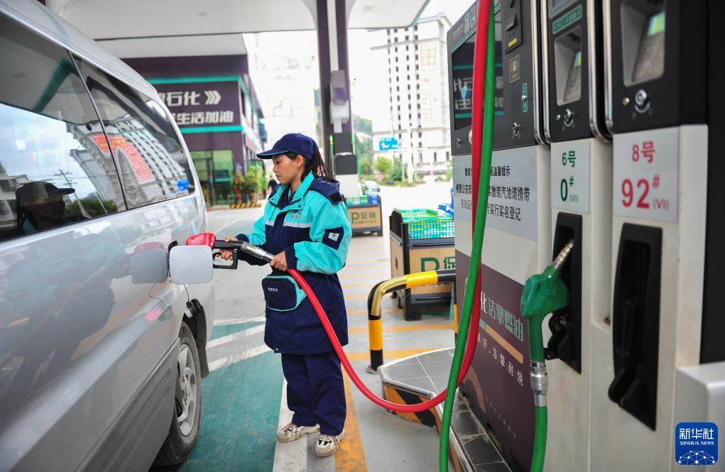 11月7日,貴州省從江縣一加油站工作人員在給汽車加油。