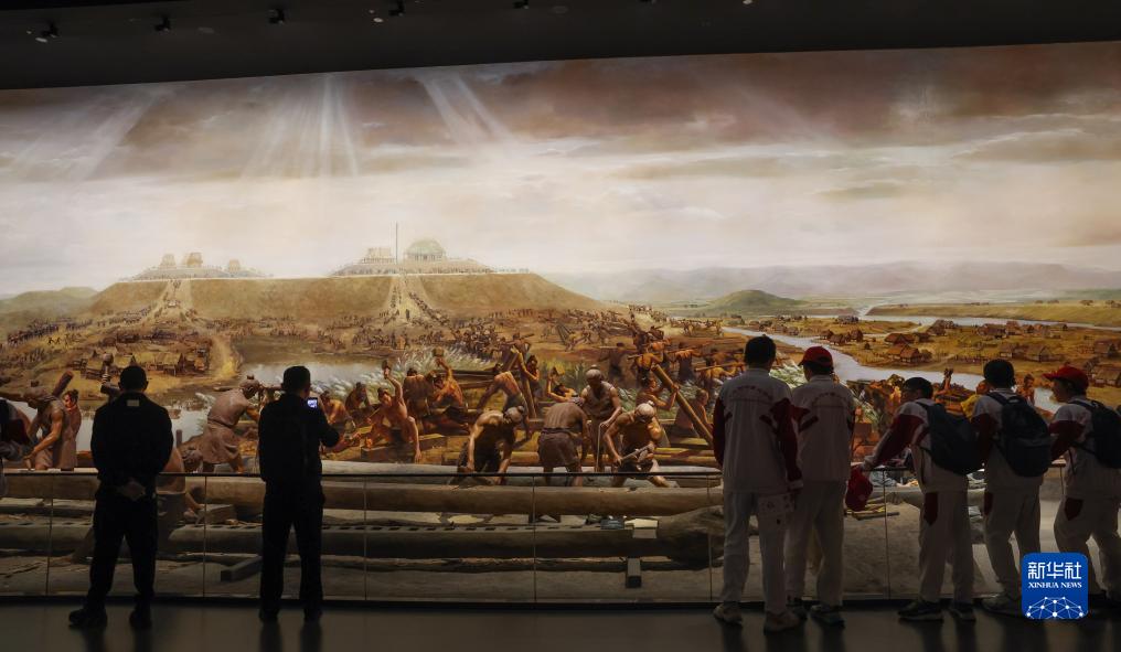 11月7日,游客在良渚博物院內參觀。良渚博物院是一座集收藏、研究、展示和宣傳良渚文化的考古遺址博物館。