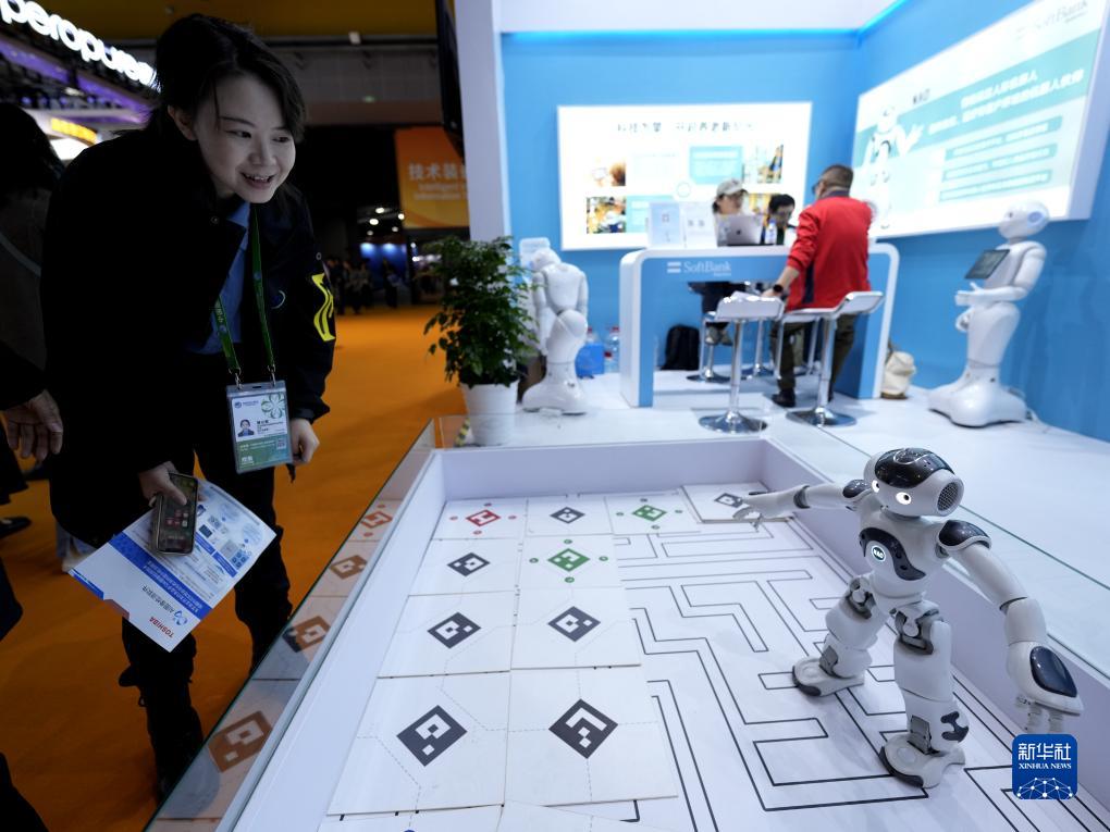 當日,在第六屆進博會技術裝備展區,人工智能技術吸引了大批觀眾前來體驗和互動。