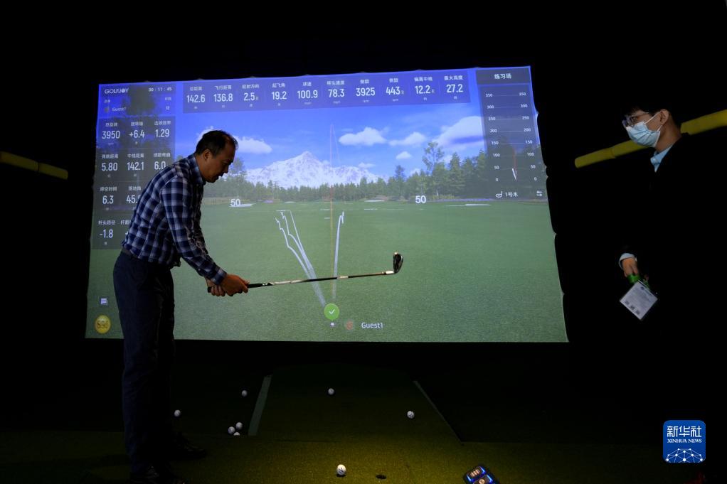 11月7日,在第六屆進博會技術裝備展區,觀眾體驗“互動高爾夫球”。