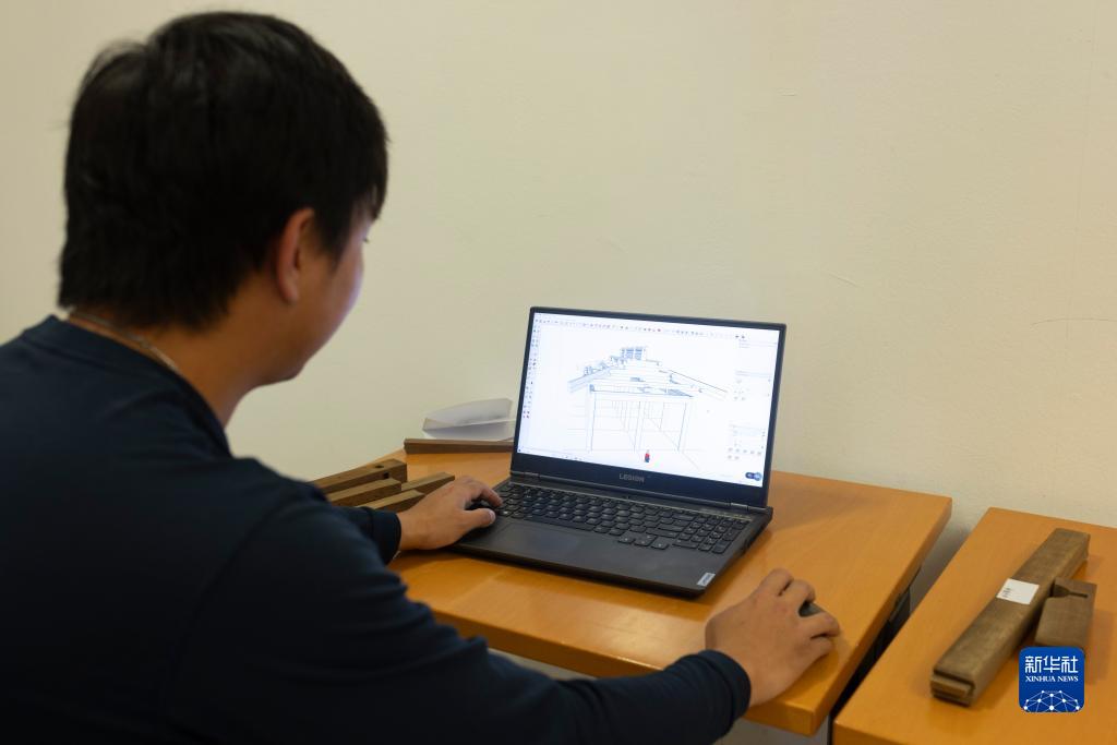 10月10日,在斯洛文尼亞盧布爾雅那的民族志博物館,故宮博物院專家史孫明根據古建筑大門模型建立3D模型。