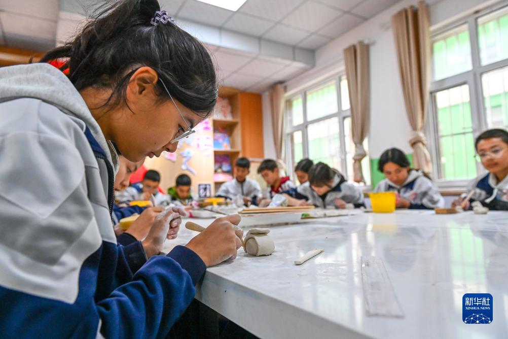 在新疆阿克陶縣雪松中學,“紅杜鵑”陶藝社團的學生在體驗陶藝制作(11月7日攝)。