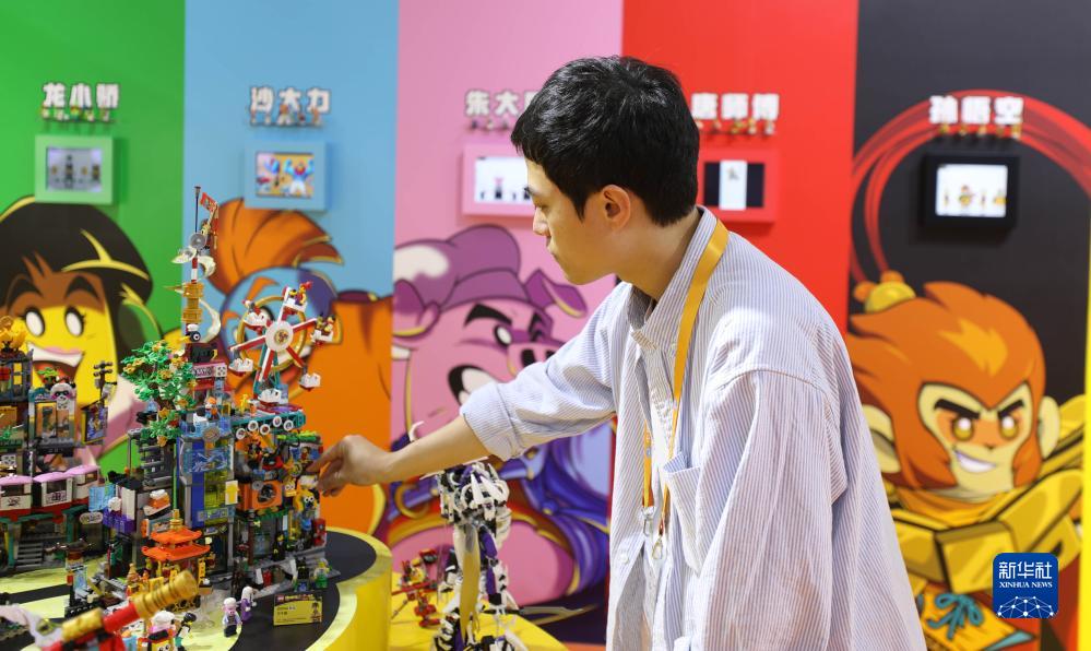 11月6日,在第六屆進博會消費品展區樂高集團展臺,樂高設計師溫笑冬介紹其參與設計并在本屆進博會首發的樂高悟空小俠萬千城玩具套裝。