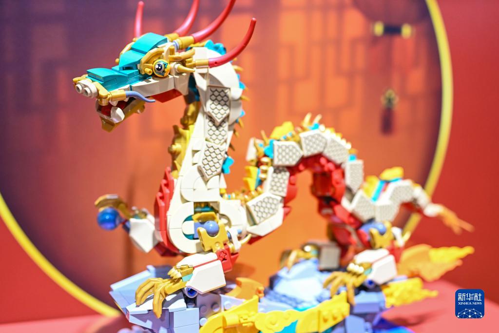 11月6日在第六屆進博會消費品展區樂高集團展臺拍攝的首次亮相的春節祥龍納福玩具套裝。