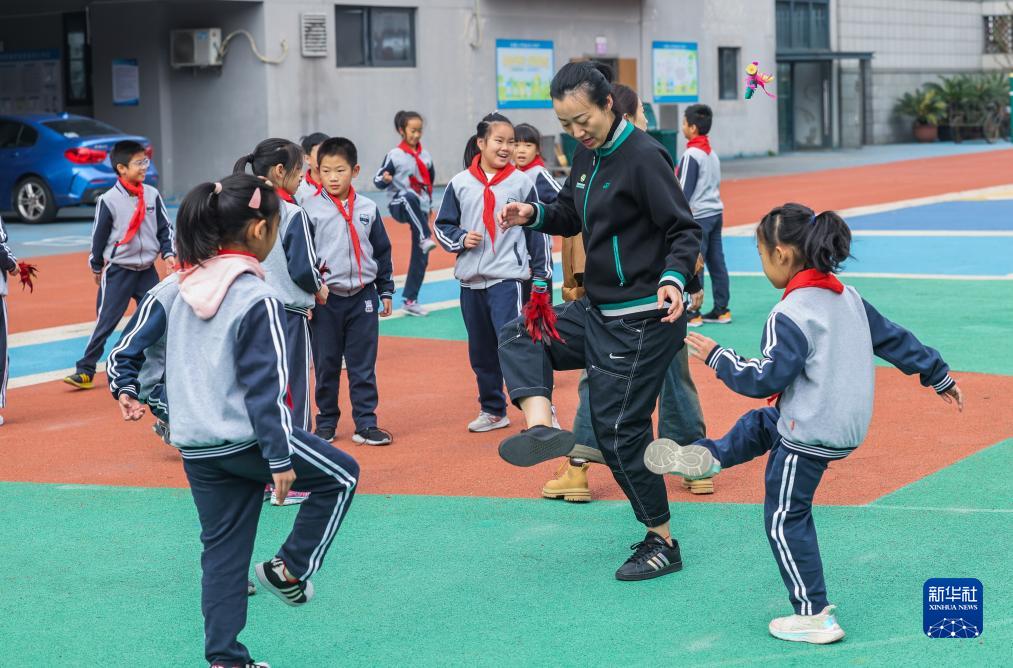 為解決“課間十分鐘”變成“課間圈養”的問題,浙江省湖州市各中小學校在充分保障課間十分鐘休息時間不被擠占的同時,提升操場硬件水平并由老師帶領學生開展豐富多樣的課間游戲及體育活動,讓學生們享受室外活動的快樂。
