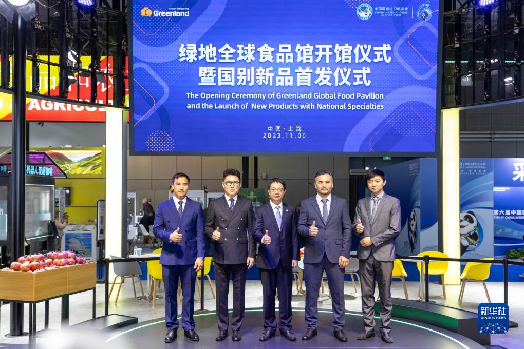 11月6日,阿里(左一)在第六屆進博會食品及農產品展區參加綠地全球食品館開館儀式暨國別新品首發儀式,來自阿富汗坎大哈的石榴作為新品在現場首發,通過進博會平臺進入中國市場。