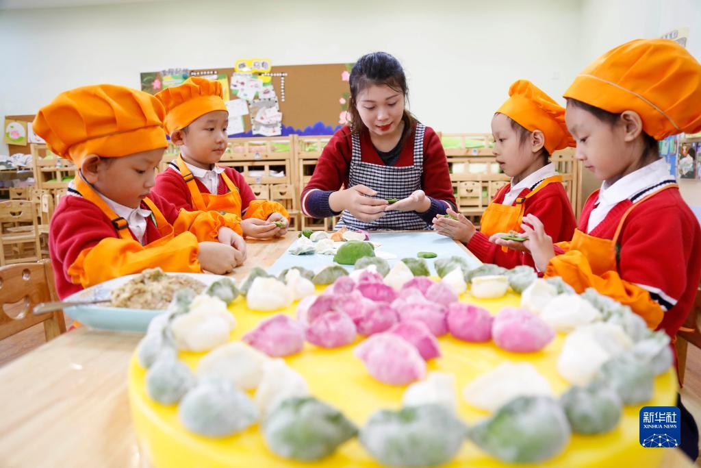 11月8日迎來立冬節氣。多地幼兒園開展包餃子活動,小朋友在老師的指導下學習包餃子、煮餃子,體驗傳統民俗文化。