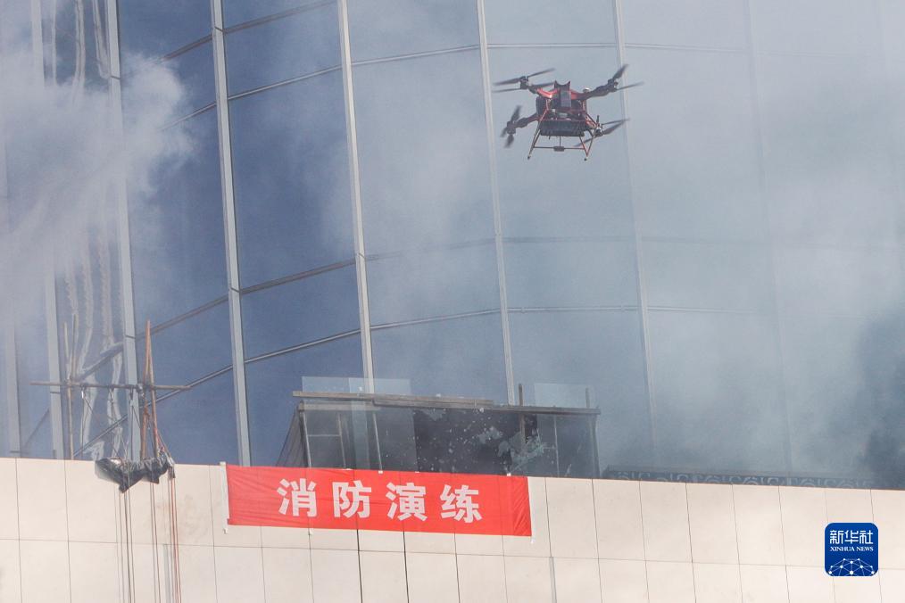 當日,甘肅省消防救援總隊在甘肅省蘭州市開展應對高層建筑和大型綜合體火災的消防演練。演練結合高層建筑火災特點,搭建模擬場景,投用新型高噴滅火無人機等進行實戰化演練,以提升消防救援隊伍滅火救援和協同處置能力。