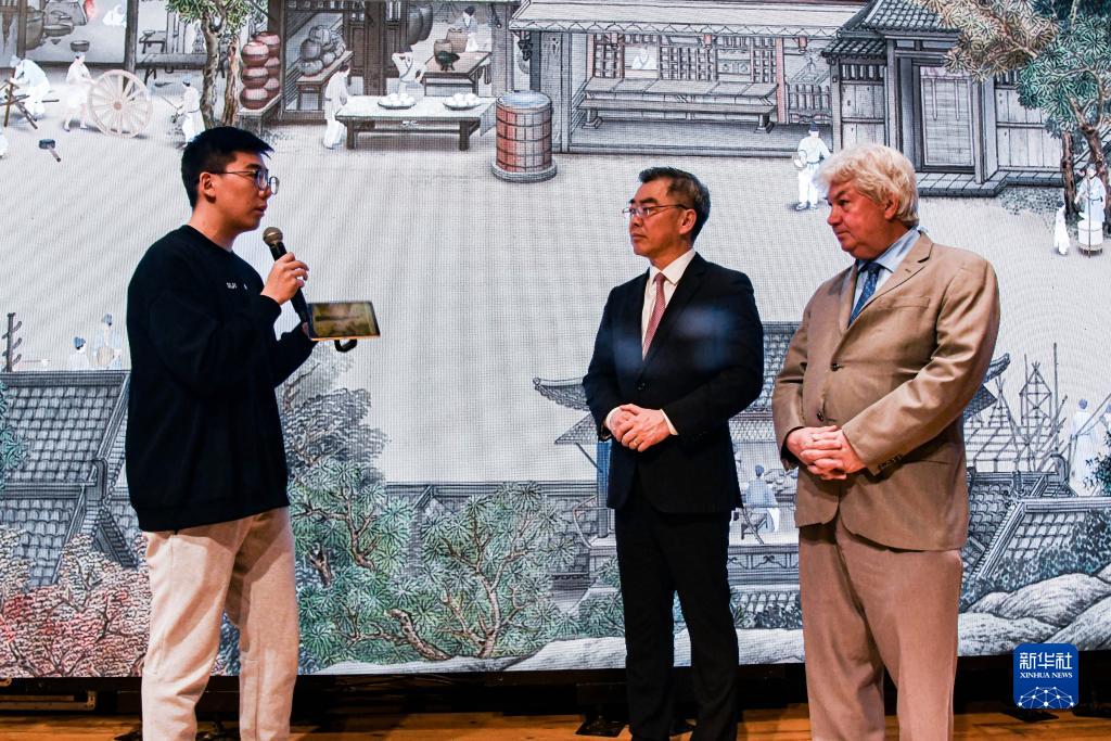 11月6日,在美國波士頓,來賓聽取“園見南京”文化主題藝術展介紹。