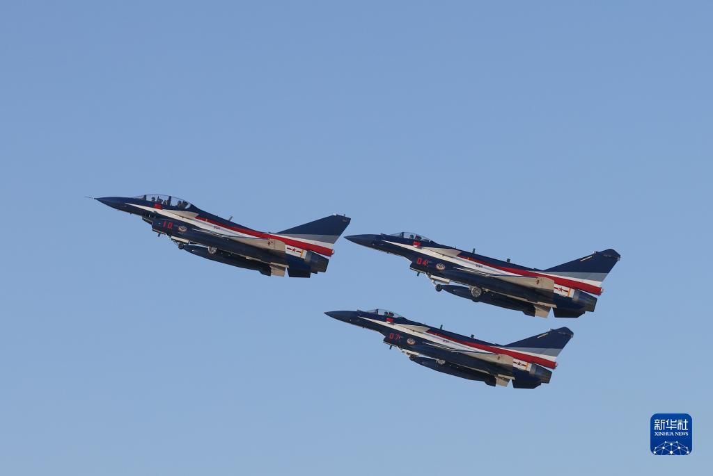 中國人民解放軍空軍八一飛行表演隊三機編隊從華北某機場啟程(11月7日攝)。