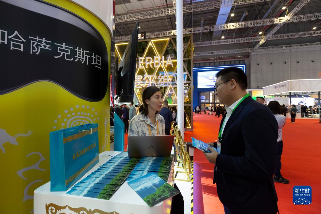 11月6日拍攝的第六屆進博會哈薩克斯坦國家展臺。