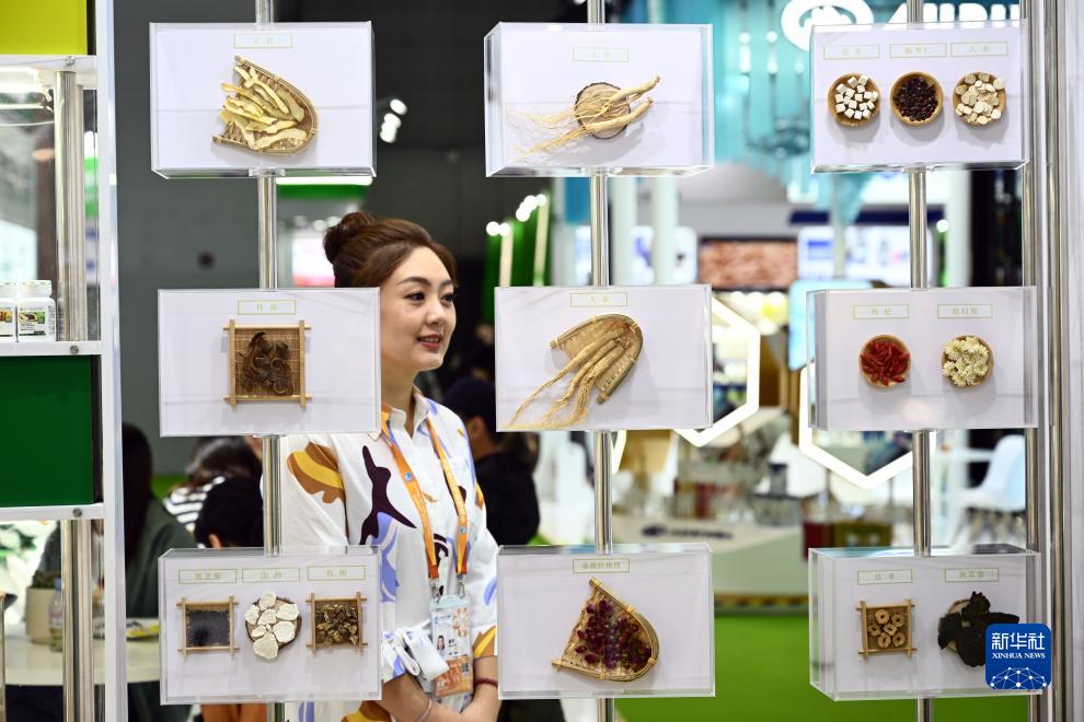 11月7日,觀眾參觀第六屆進博會安利展位上的中藥材。