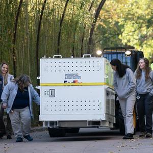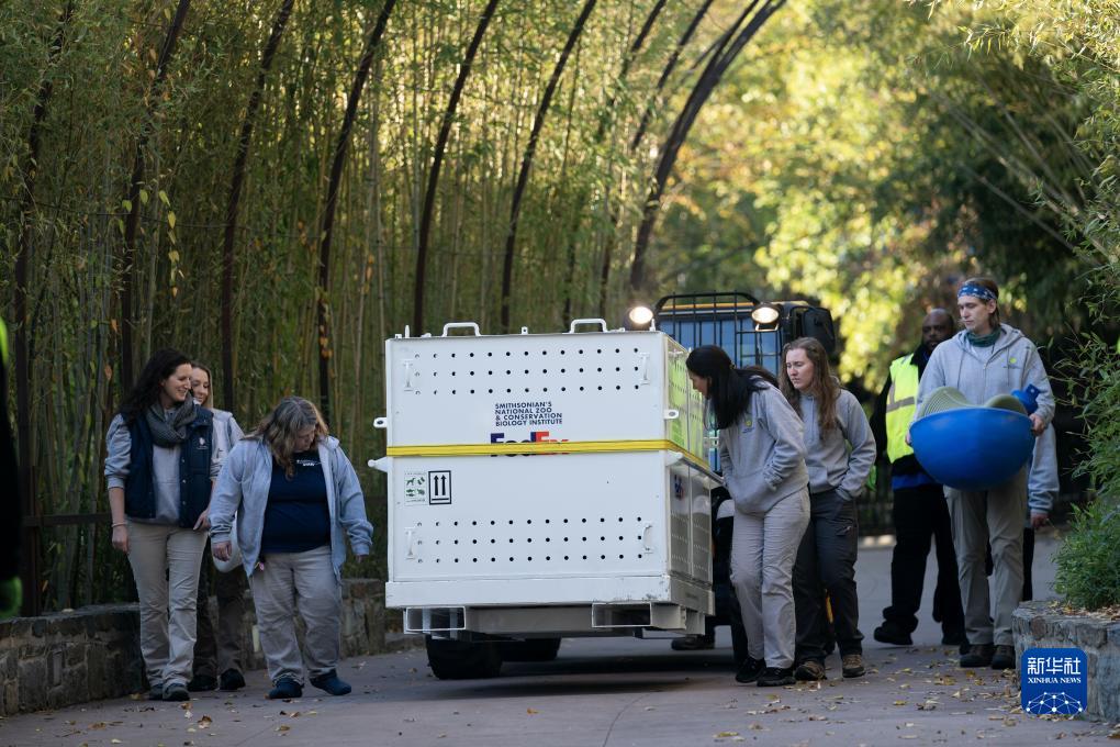 11月8日,在美國華盛頓史密森學會國家動物園,裝有大熊貓的箱子準備被運往機場。