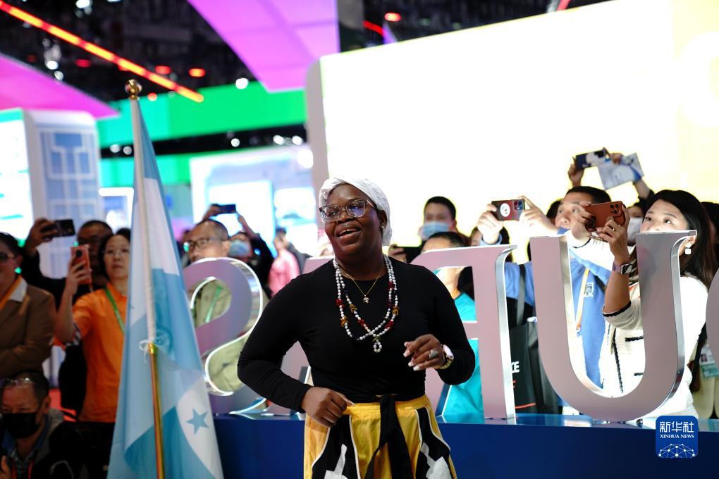 11月7日,在第六屆進博會國家展區,來自洪都拉斯的歌舞表演吸引觀眾觀看拍攝。
