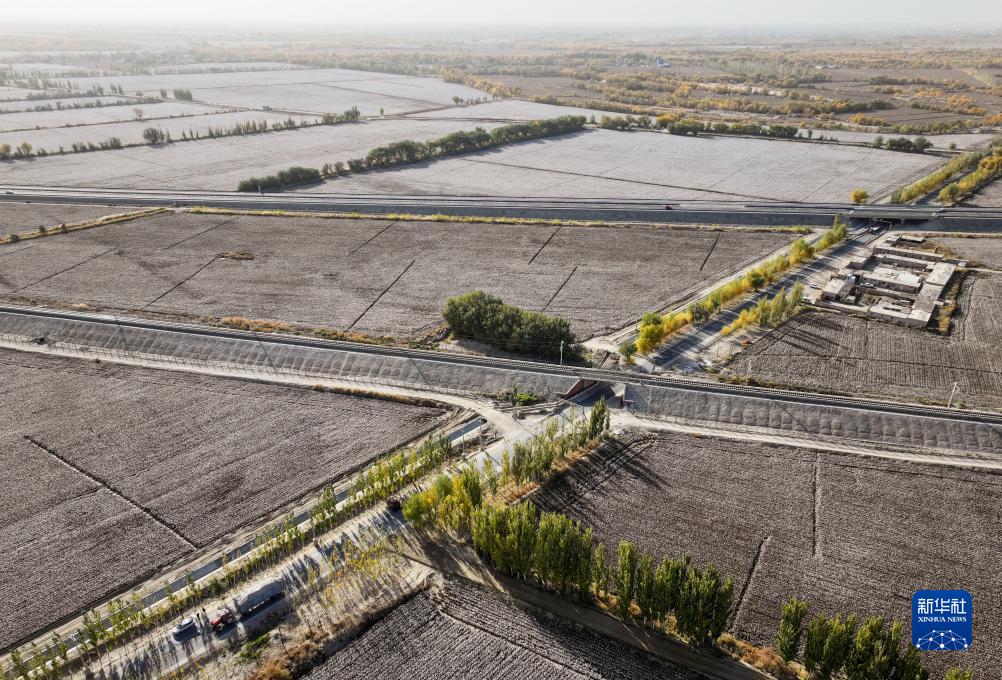 新疆尉犁縣境內大片的棉田(11月2日攝,無人機照片)。