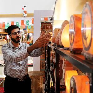 巴基斯坦兄弟哈比和李明算是進博會的“老朋友”了。他們第一次參展是2021年第四屆中國國際進口博覽會。在當時為期6天的展期上,二人共銷售了一整個集裝箱的鹽燈。乘著“進博”的東風,會后的兩個月,又在常設展里賣出兩個集裝箱約5萬個鹽燈。