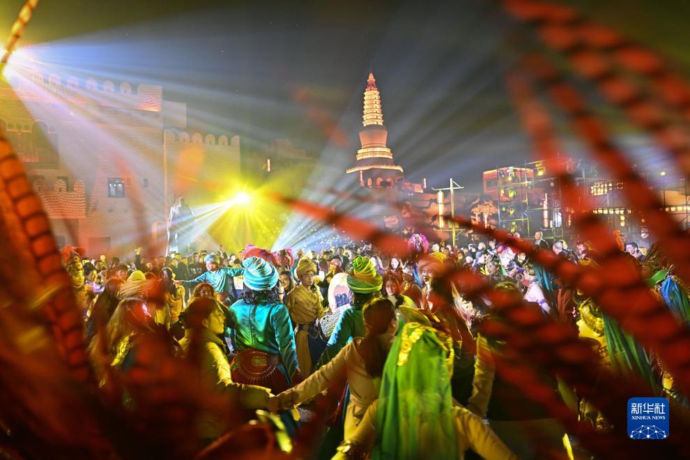 約特干故城,位于新疆和田地區和田縣巴格其鎮,是當地結合歷史文化打造的集文化、旅游、商業、休閑等功能為一體的特色小鎮。每當夜幕降臨,《萬方樂奏有于闐》大型演出便在故城上演。演出以全城建筑為實景,現代光影技術與特色風土人情相結合,結合“班超出塞”“傳絲公主”等多樣化主題表演,令游客仿若穿越千年時空,“一步一景”沉浸式感受絲路西域的繁華盛景。記者探訪了解到,特色小鎮約特干故城正成為新疆旅游的全新“打卡地”,是文化潤疆建設的有益探索。
