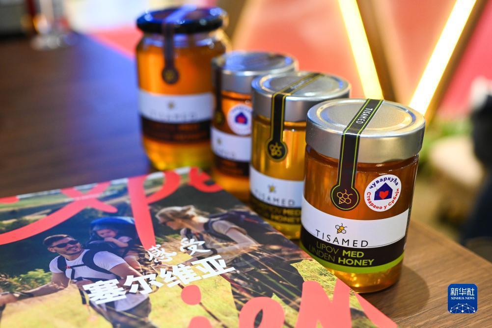11月8日在第六屆進博會上拍攝的塞爾維亞蜂蜜產品。