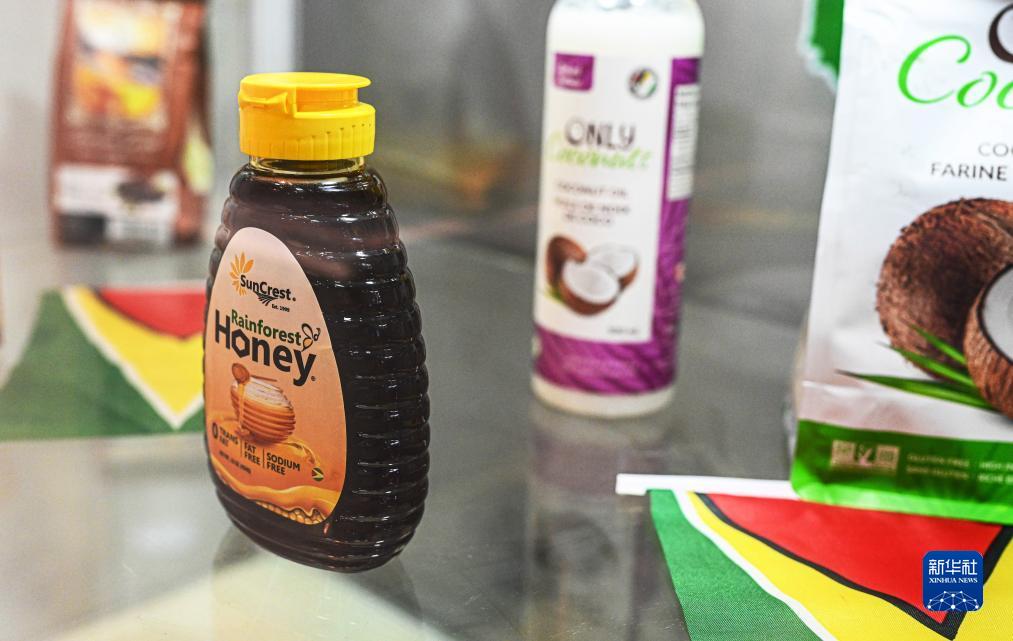 11月8日在第六屆進博會上拍攝的圭亞那蜂蜜產品。