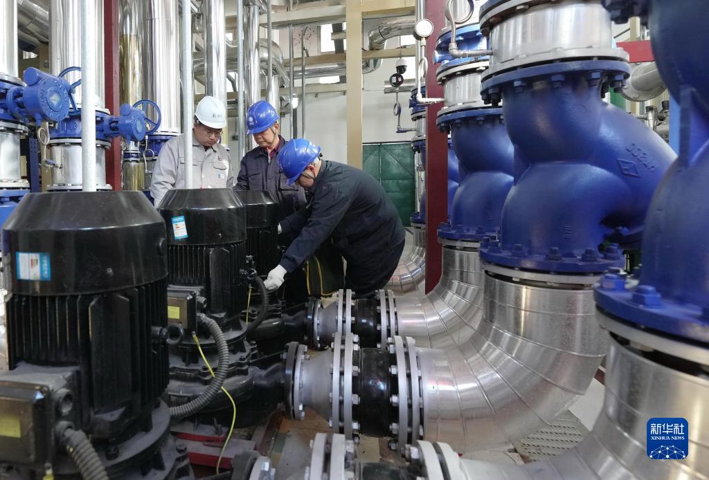 11月9日,國網辛集市供電公司工人檢修供熱電力設備。
