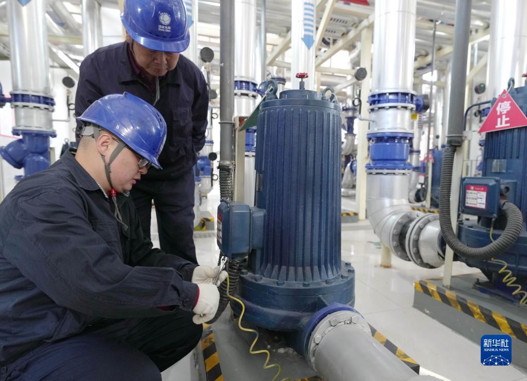 11月9日,國網辛集市供電公司工人檢修供熱電力設備。