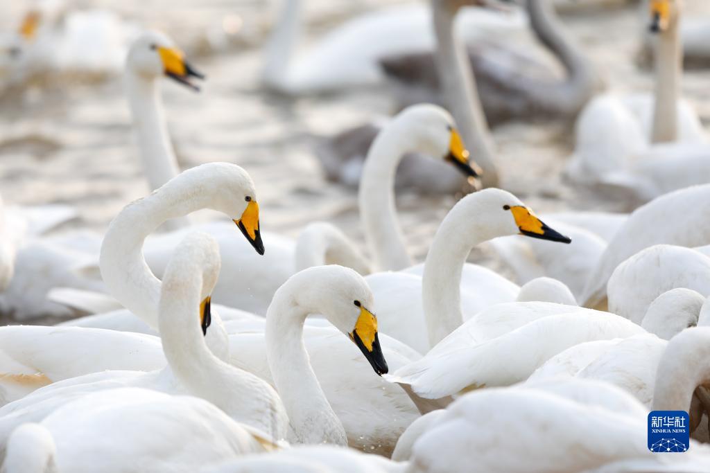 初冬時節,大批大天鵝來到位于河南省三門峽市的天鵝湖國家城市濕地公園越冬。三門峽憑借適宜的氣候、優良水生態和安全的環境,目前已成為我國境內大天鵝棲息越冬的主要目的地之一。