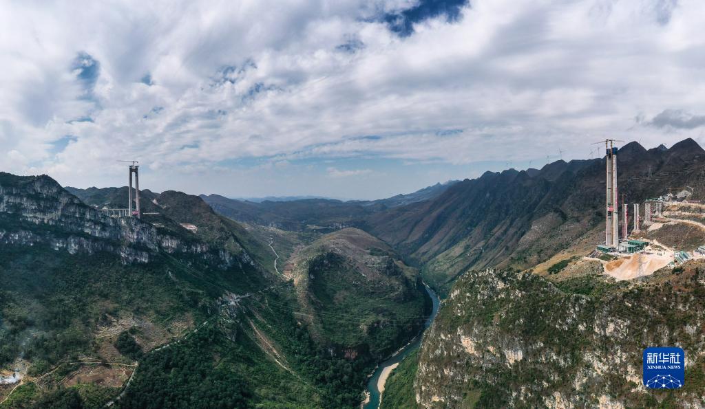 這是11月8日拍攝的貴州六安高速花江峽谷大橋建設現場(無人機全景照片)。