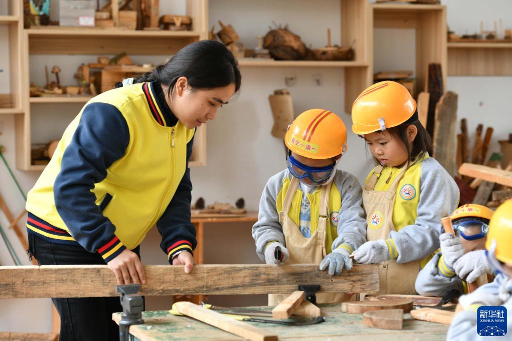 11月9日,在黃平縣示范幼兒園,老師帶領小朋友體驗手工。