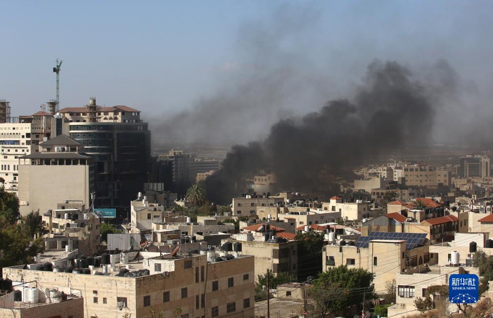 這是11月9日在約旦河西岸杰寧沖突現場升起的濃煙。