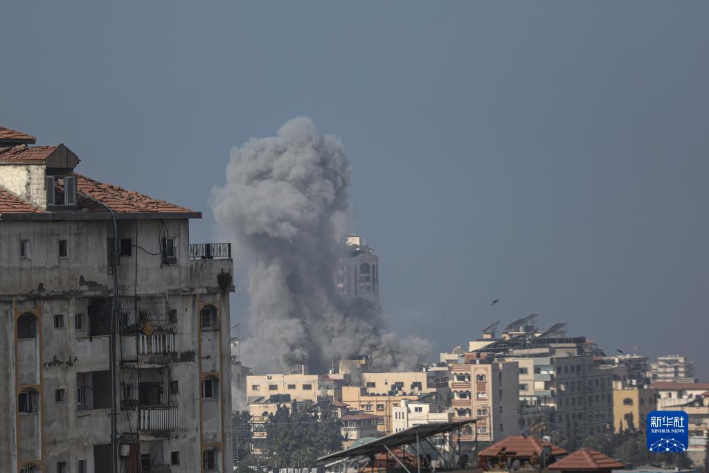 11月9日,加沙城建筑遭以色列軍隊空襲后升起濃煙。