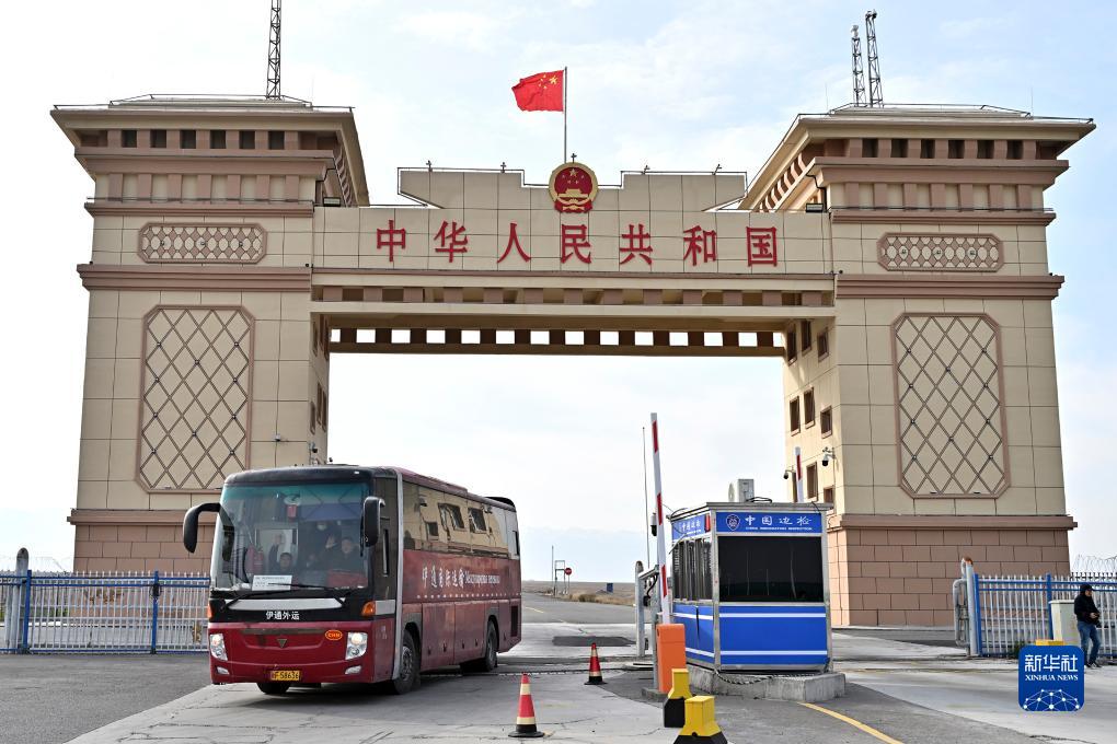11月9日,一輛客車從都拉塔口岸國門駛入中國。