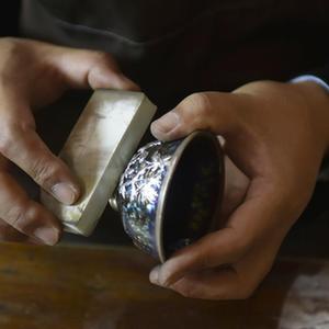 河南省郟縣金鑲玉制作技藝是國家級非物質文化遺產代表性項目,歷史悠久,獨具文化內涵和藝術價值。據介紹,金鑲玉制作技藝原為對有瑕疵或破損的玉石、茶具等器物,用銅、錫等金屬絲片進行掩飾、修補的鑲嵌工藝,后來逐步發展成為在陶瓷、紫砂等器物表面鑲嵌不同金屬(或合金)圖紋裝飾的獨特工藝。