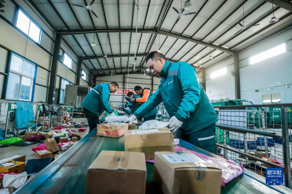 11月9日,河北省遵化市郵政快遞公司的工作人員在車間分揀收寄的快件。
