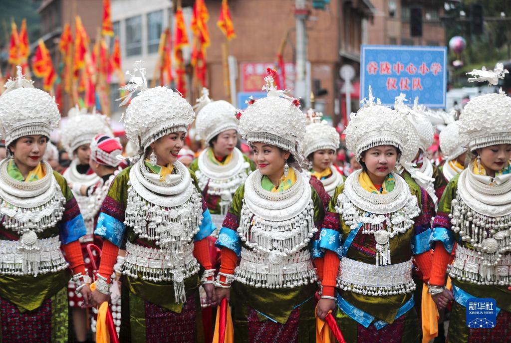 當日,貴州省黔東南苗族侗族自治州黃平縣谷隴鎮迎來蘆笙節。當地苗族群眾身著盛裝,載歌載舞歡度節日,祈禱來年風調雨順、五谷豐登。