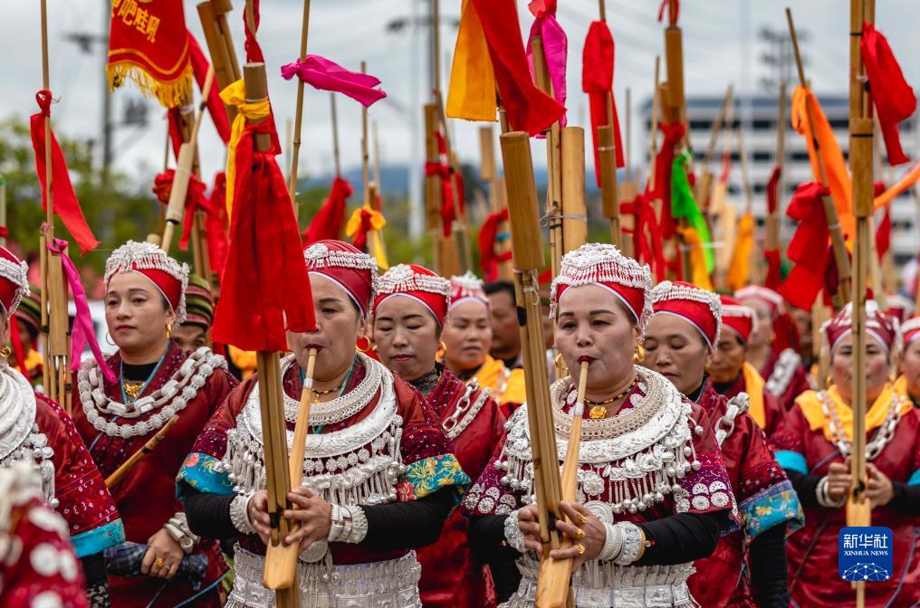 當日,貴州省黔東南苗族侗族自治州黃平縣谷隴鎮迎來蘆笙節。當地苗族群眾身著盛裝,載歌載舞歡度節日,祈禱來年風調雨順、五谷豐登。