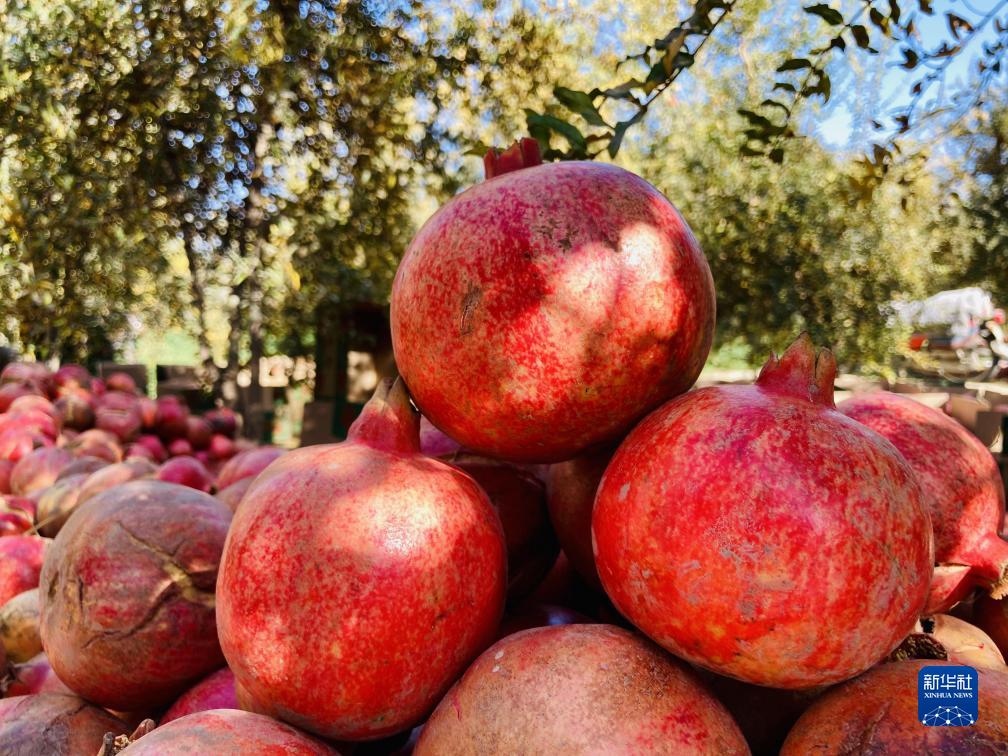 這是11月10日在阿富汗南部坎大哈省拍攝的新收獲的石榴。