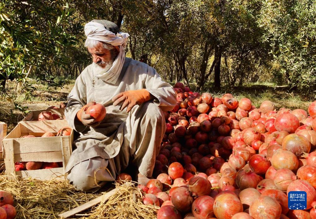 11月10日,在阿富汗南部坎大哈省,農民整理新收獲的石榴。